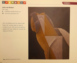 Publicatie van mijn werk: Portret van een Kat in zittende houding afgebeeld. Olieverf op Doek. Kubisme/Geometrisch.